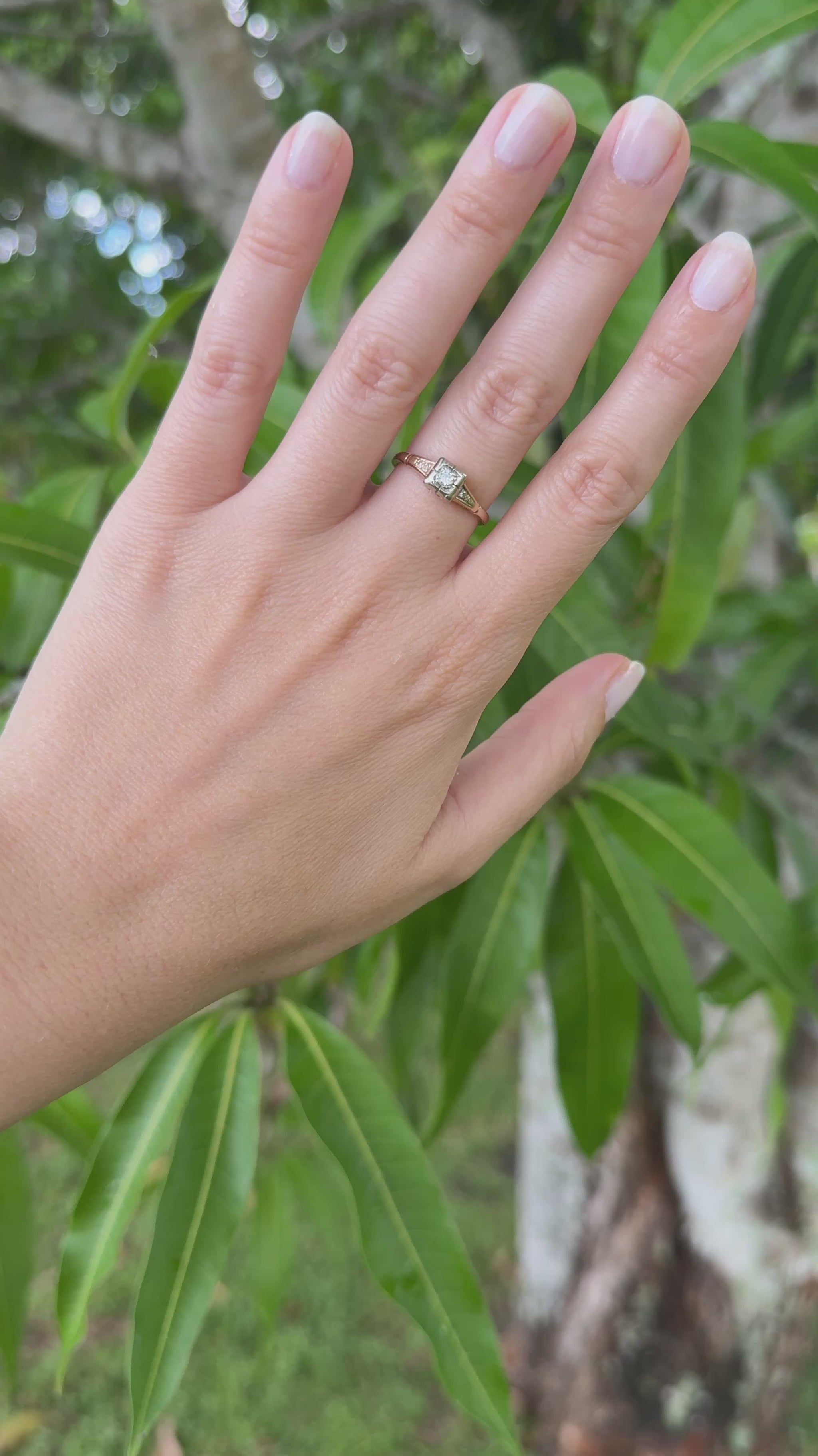 Center Stone: Old European cut diamond, approx. 2.5 mm (~0.06–0.07 ct)